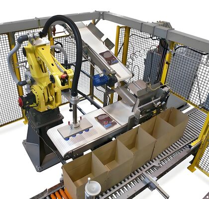 Ce système est conçu pour l'emballage automatisé de cartons, de bouteilles de vin, de canettes métalliques et de récipients en plastique.appareils électriquesIl peut être parfaitement intégré à des érigateurs de carton, des scellants de carton et des palettiseurs pour créer une ligne de production entièrement automatisée.